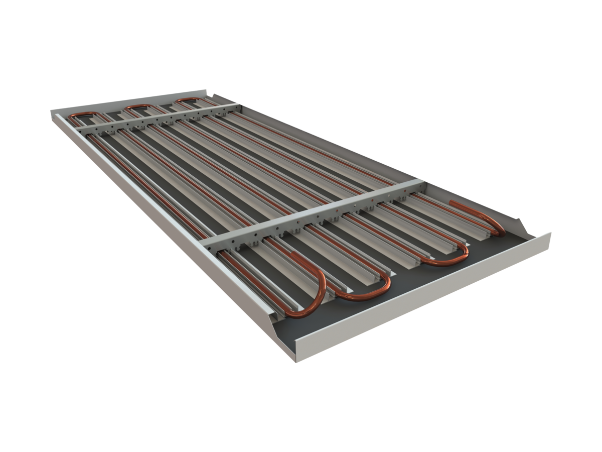 Das SPECTRA M Register eignet sich ideal zur Revitalisierung von Gebäuden, bei denen bestehende Metalldecken nachträglich aktiviert werden sollen. Zudem können Befestigung und hydraulischer Anschluss der Register unabhängig von den Deckenplatten ausgeführt und somit die Kühltechnik vor Fertigstellung der Oberfläche montiert und in Betrieb genommen werden. Dies ermöglicht es zudem die Register vorab als Baubeheizung zu betreiben.
