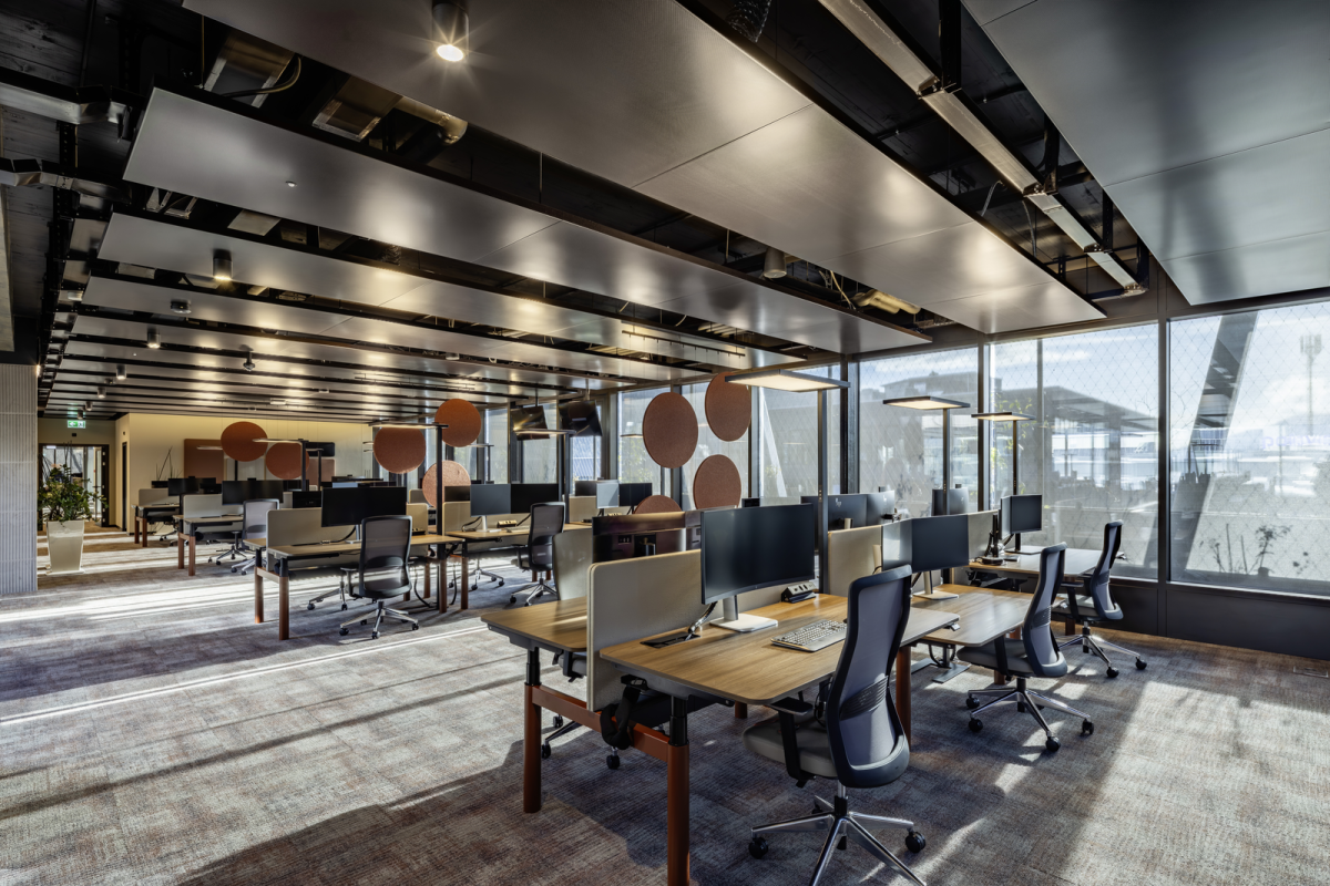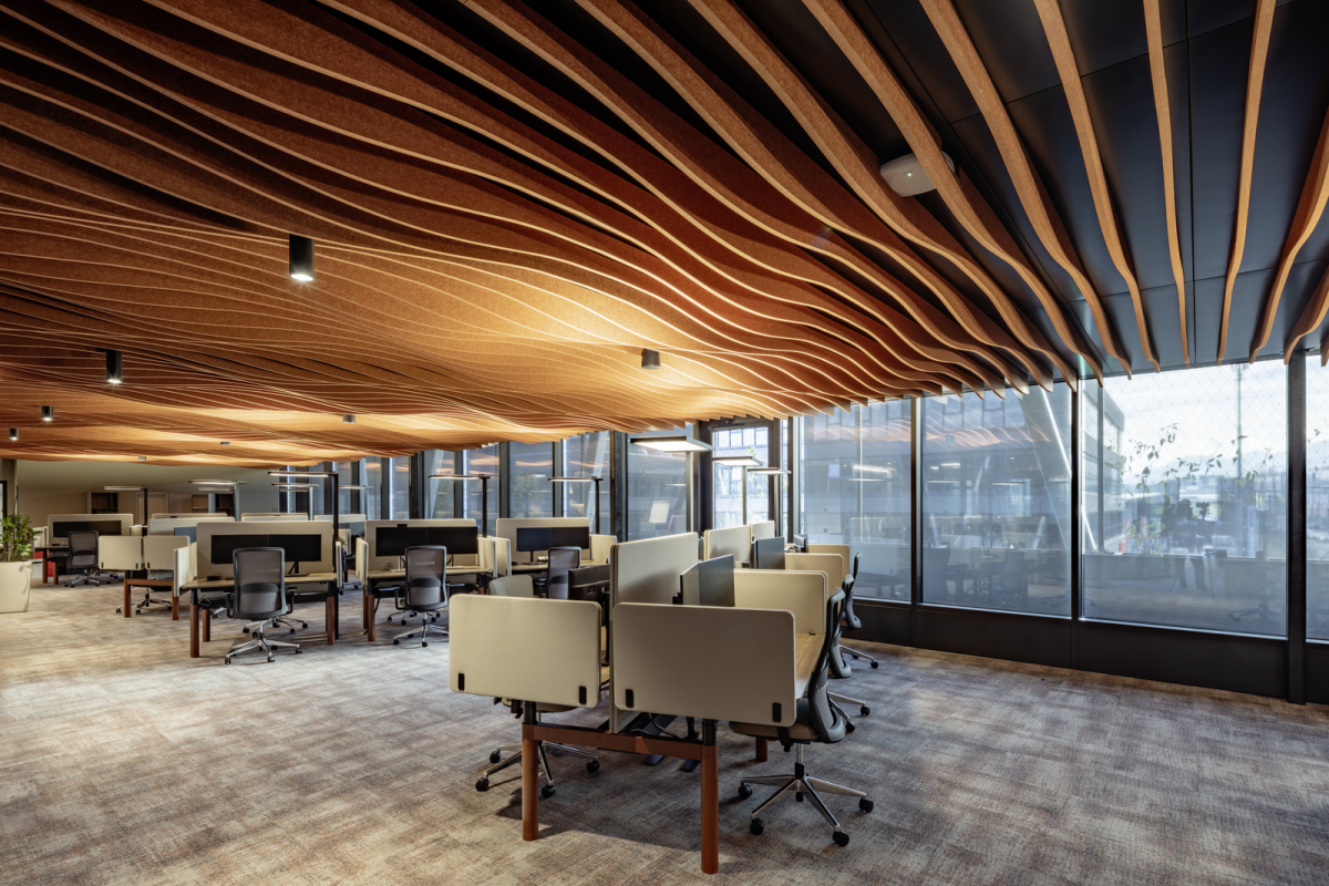 Die Grossraumbüros sind mit einer Kombination aus A11-S Klimadeckensegeln, dem CAURUS Hybridsystem sowie ADRIATIC Kühlbalken von Swegon ausgestattet. In einem Grossraumbüro wurden aufgrund der sehr hohen Kühllasten ADRIATIC Kühlbalken von Swegon oberhalb der Kühlsegel unsichtbar installiert. Diese Systemlösungen sorgen für eine ausgeglichene Raumtemperierung und bieten gleichzeitig hohe Flexibilität in der Flächennutzung.