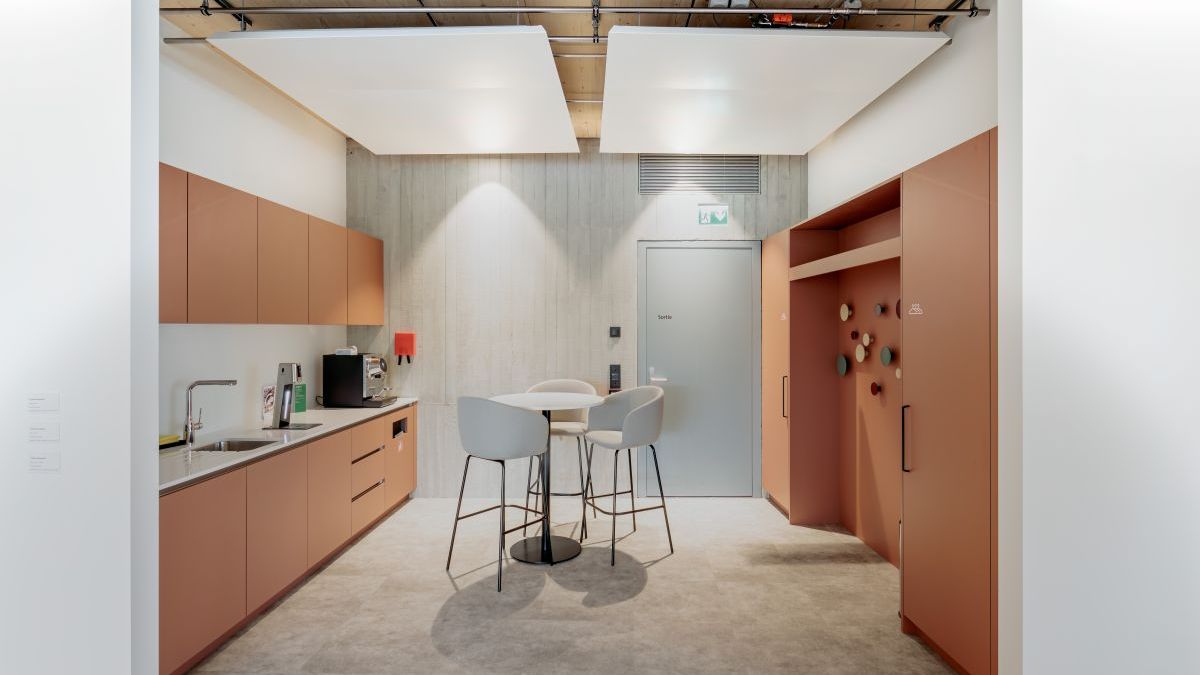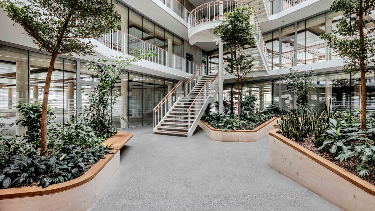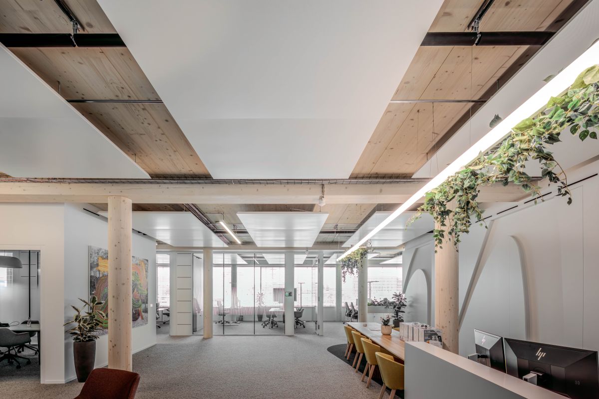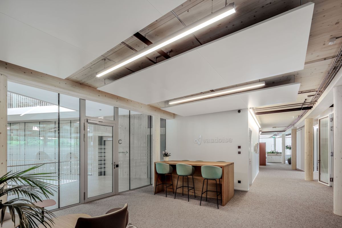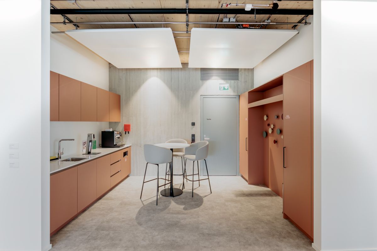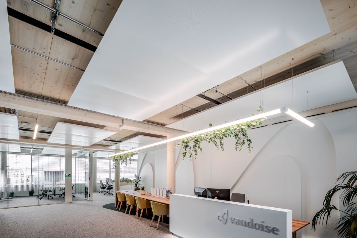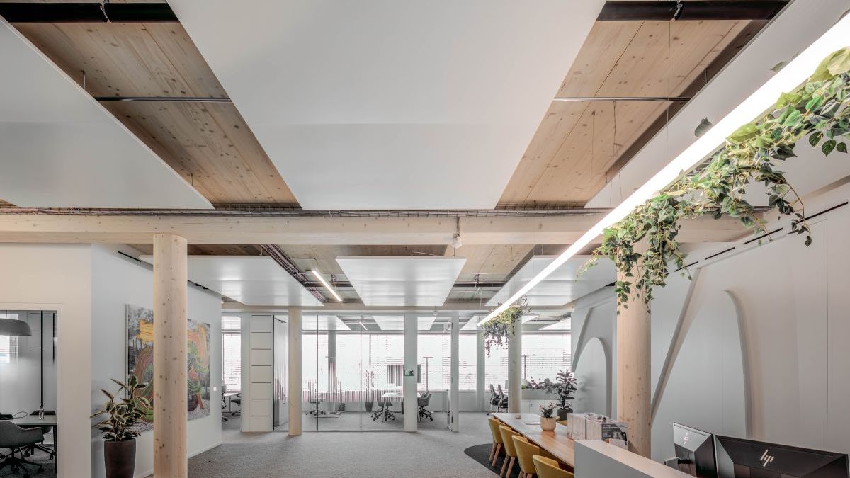 Für die Klimatisierung kam das leistungsstarke A11-S Heiz- und Kühlsegel zum Einsatz, das vollständig von der Raumluft umströmt wird. Die Register werden mit moderner Lasertechnik verschweisst und dauerhaft mit einem Spezialkleber an die Metallplatten gepresst, was einen optimalen Wärmeübergang ermöglicht und die Leistung zusätzlich steigert. Akustikvliese und optionale Dämmstreifen sorgen für eine hervorragende Raumakustik, ohne die Kühlleistung zu beeinträchtigen. Zusätzlich ist das A11-S mit einer EPD-Zertifizierung ausgezeichnet, die unabhängig geprüfte und transparente Informationen über die Umweltbelastungen während des gesamten Produktlebenszyklus liefert und so den nachhaltigen Anspruch des Projekts unterstreicht.