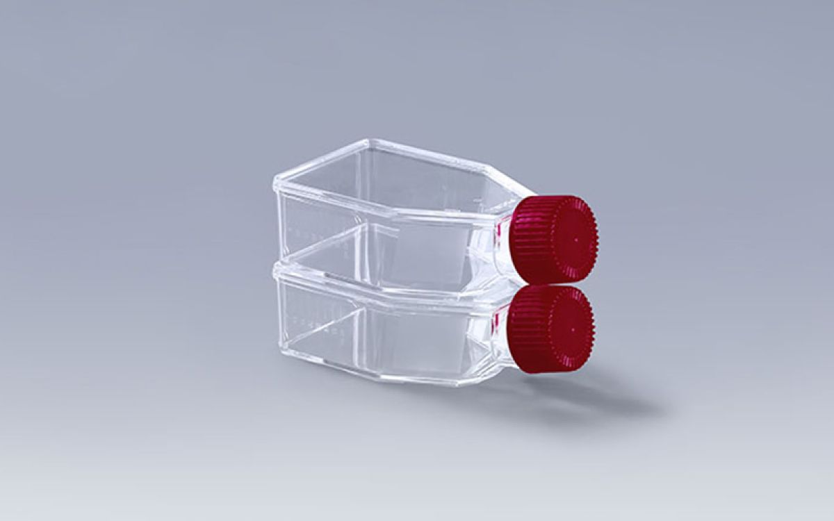 Cell culture flasks provide a stable and uniform surface that supports even cell attachment and growth. Gas-permeable caps allow efficient CO₂ exchange while maintaining a closed culture environment.