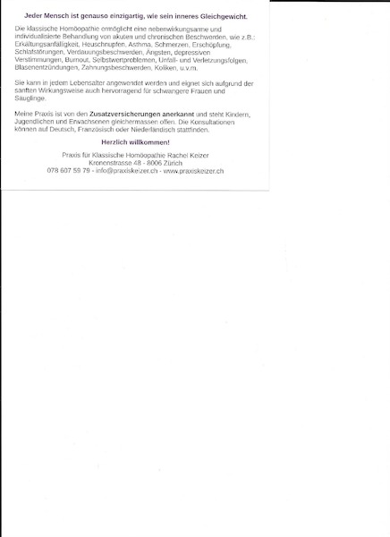 Firma: Praxis für klassische Homöopathie Rachel Keizer in 8006 Zürich