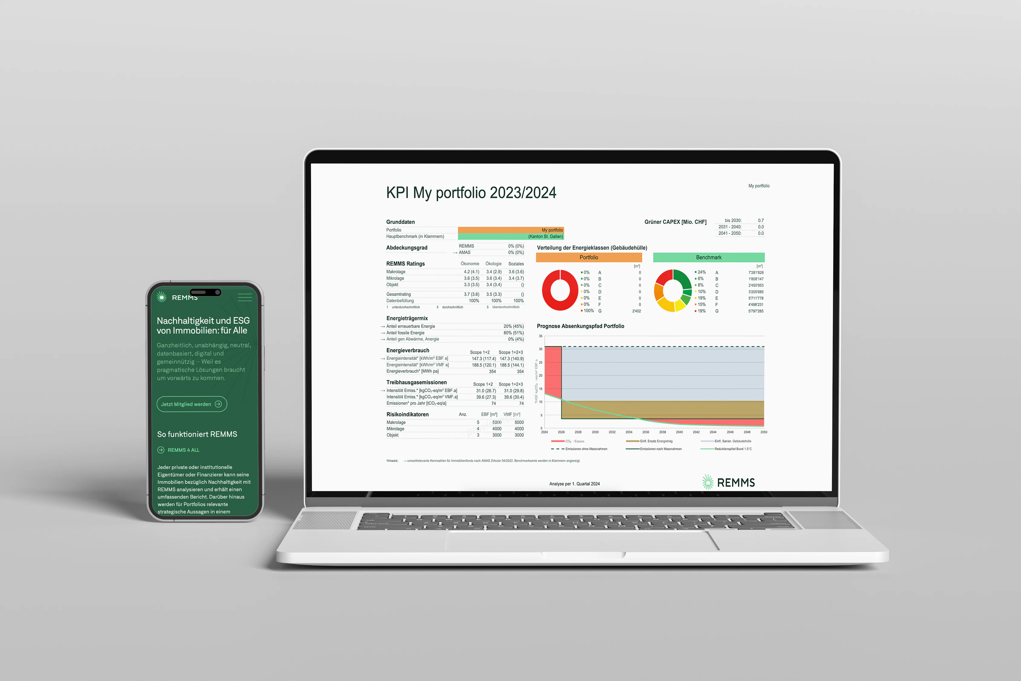 Mit REMMS 4 ALL haben wir für den Verein REMMS eine Plattform geschaffen, die Immobilienbesitzern hilft, ihre Objekte objektiv nach ESG-Kriterien zu bewerten. Ob privates Einfamilienhaus oder grosses institutionelles Portfolio – die Web-Applikation liefert datengestützte Berichte und Benchmarks in Rekordzeit. Ein smartes Tool, das komplexe Standards (wie GRESB oder CRREM) verständlich und steuerbar macht.