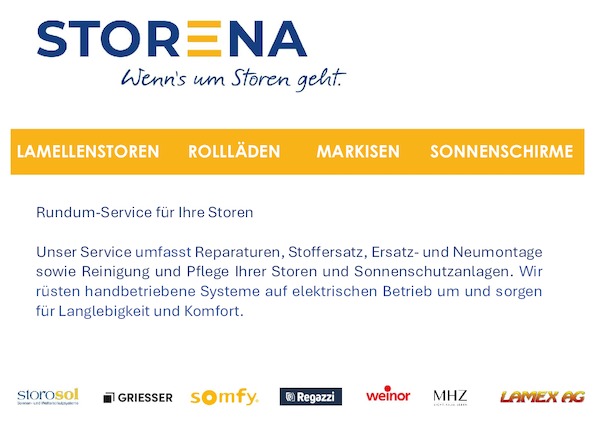 Die Gesellschaft bezweckt den Handel, die Montage und Reparatur von Sonnenschutzanlagen (Storen, Rollläden und Markisen).