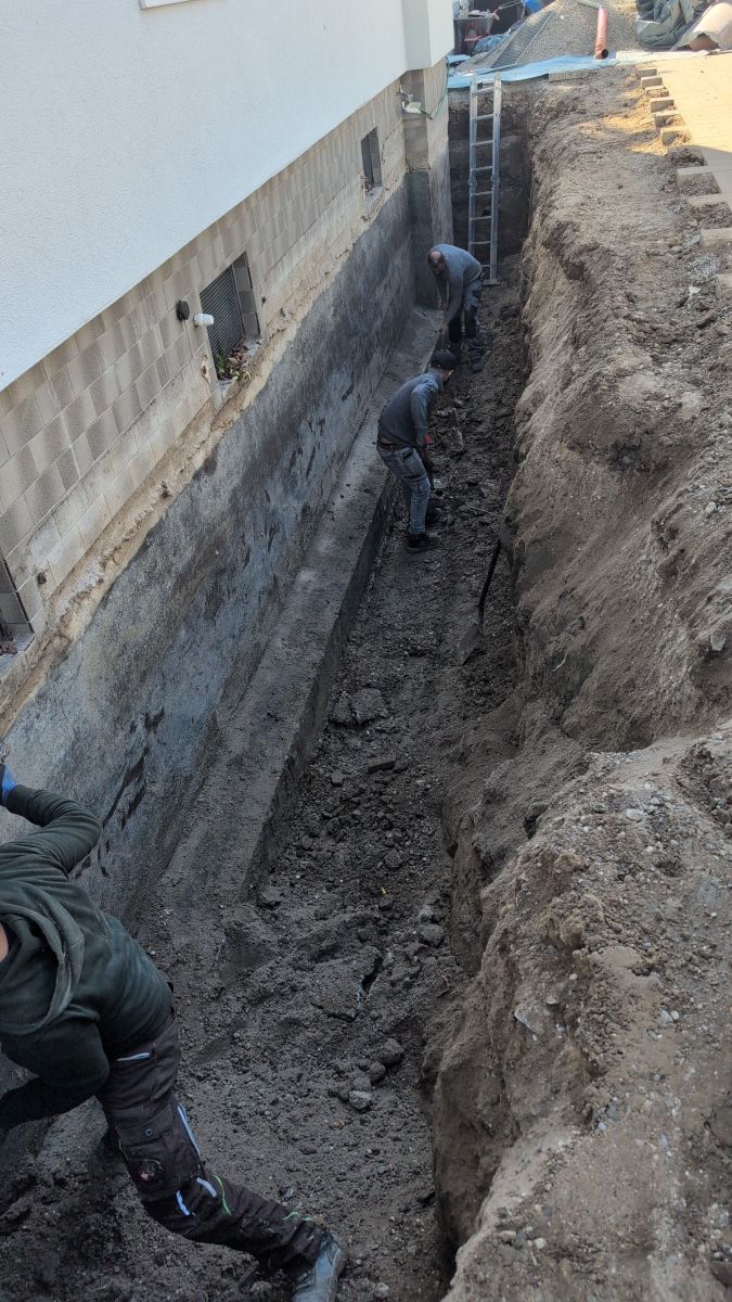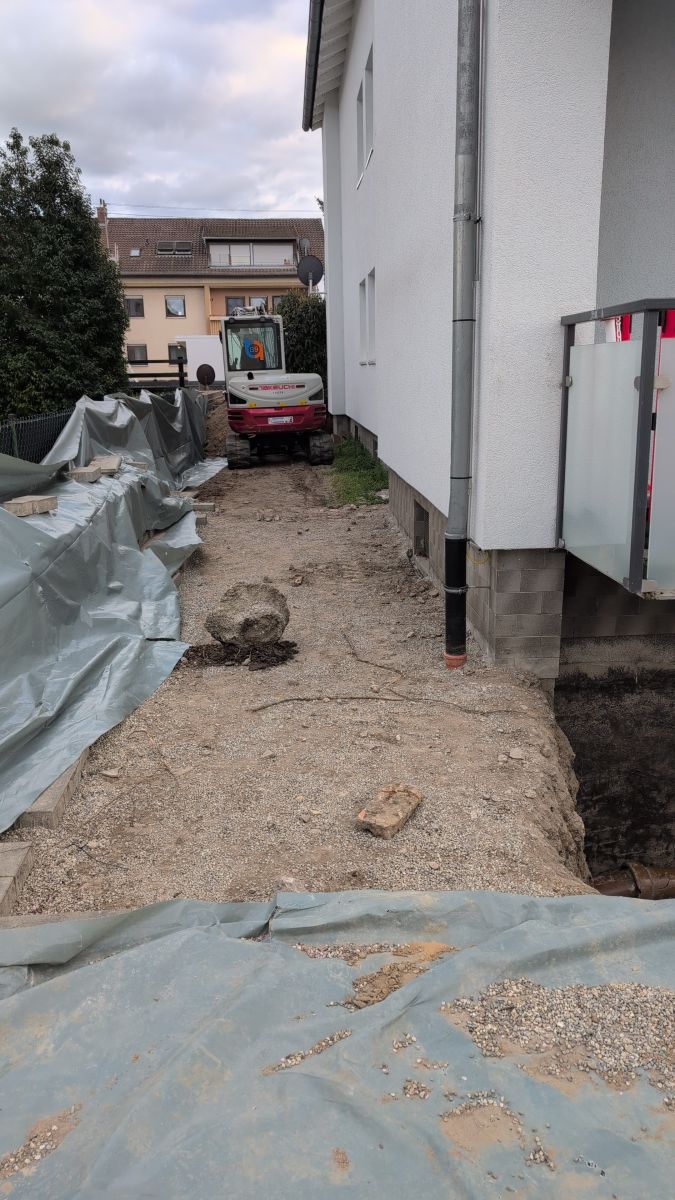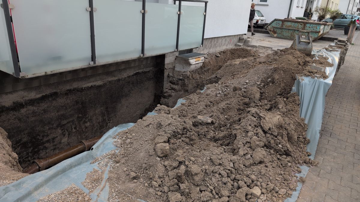 Der Hausbesitzer hatte mit feuchten Kellerwänden zu kämpfen. Eine dauerhafte Lösung war nur durch eine professionelle Abdichtung von außen möglich. Die Herausforderung: Der Arbeitsbereich lag direkt an einem gepflasterten Gehweg, der erhalten bleiben sollte.