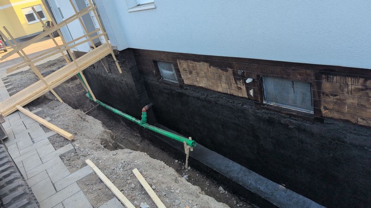Das sind spezielle Rohre für die Entwässerung (Drainage) oder als Leerrohre für Leitungen. Sie fangen anfallendes Sickerwasser direkt vor der Kellerwand ab und leiten es sicher vom Gebäude weg. Das entlastet die neue Abdichtung massiv und bietet einen doppelten Schutz vor Nässe.