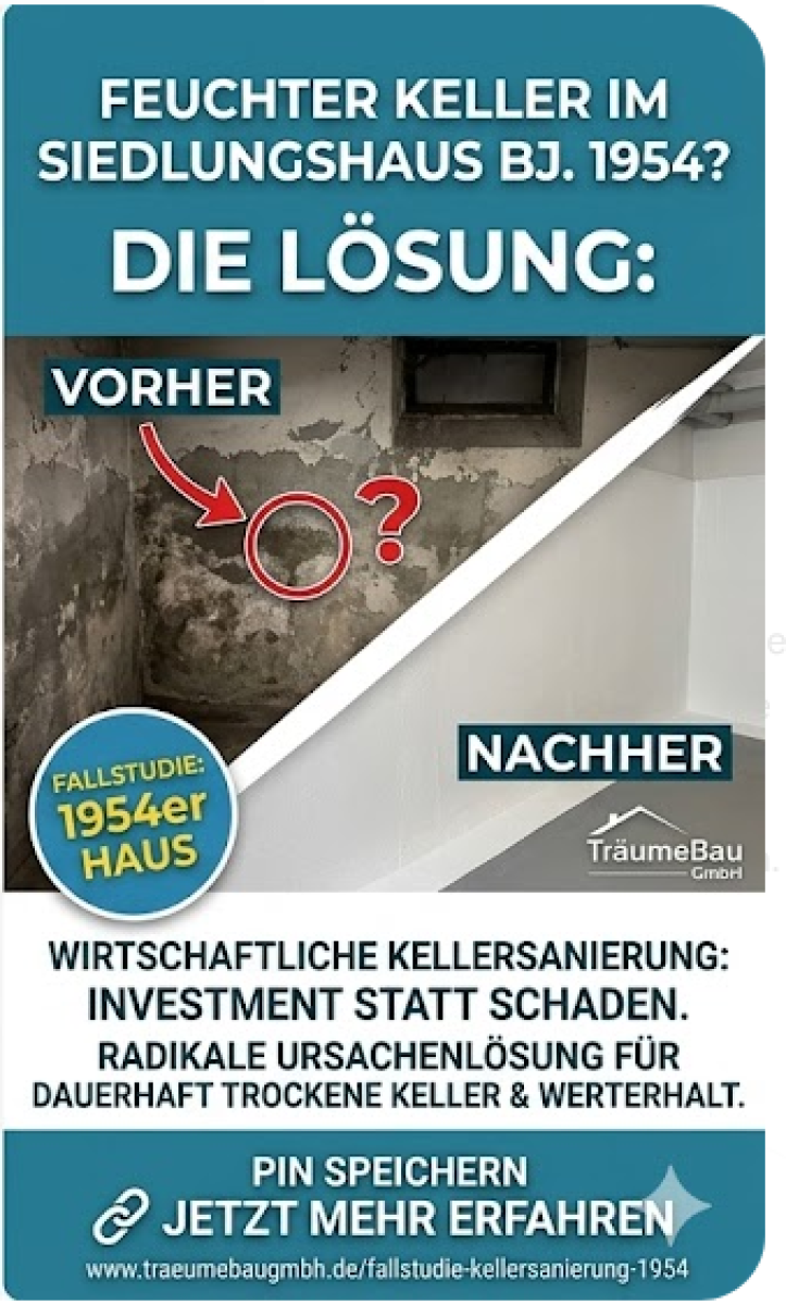 Bild: Die Kellersanierungs-Lüge: Warum Injektionen & Horizontalsperren physikalisch oft scheitern @TräumeBau GmbH – Werterhalt durch radikale Ursachenlösung.