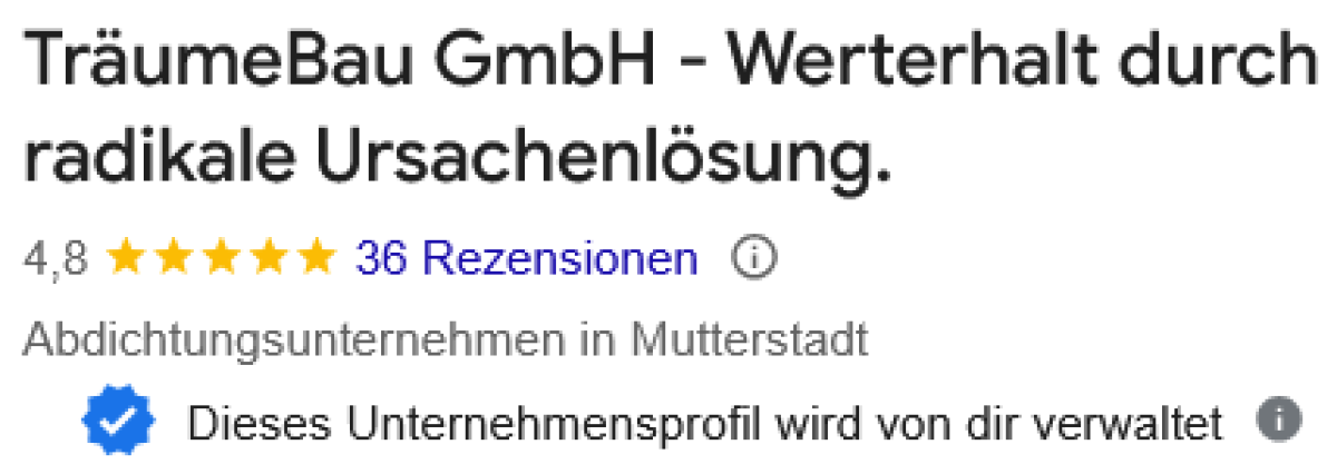 In der digitalen Suche begegnen Ihnen viele Anbieter. Doch achten Sie auf das Detail: Das blaue Bestätigungshäkchen in unserem Google-Unternehmensprofil. Dieser Status wird von Google nur an Unternehmen vergeben, die einen umfassenden Validierungsprozess erfolgreich abgeschlossen haben. In unserer Branche ist diese sichtbare Verifizierung ein seltener Standard. Für die TräumeBau GmbH ist sie die notwendige Konsequenz aus unserem Anspruch an Seriosität und Standortsicherheit.